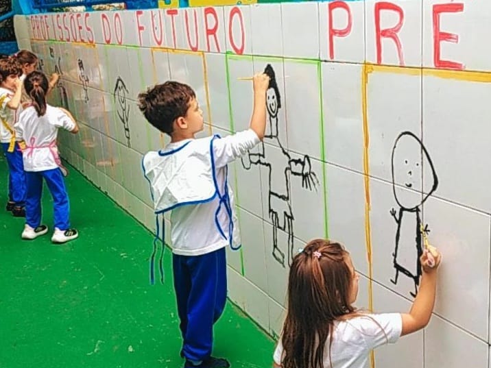 Além disso, são propostos diversos projetos que envolvem arte. São participativos, por exemplo, na produção de elementos que decoram a escola para festas e eventos que envolvam a família. Usam sua criatividade e abusam dos materiais. Com isso, em cada fase há muitos ganhos para o desenvolvimento, aprendem cores, aprendem a nomear, a contar, a colar, a montar. Descobrem funções dos objetos, aprendem a manipular e mais: se envolvem com o senso de coletivo, de equipe e de pertencimento.